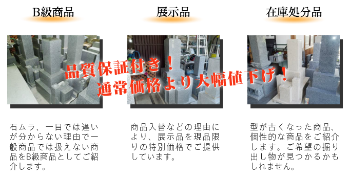 その一環として、取り扱い商品の価格の幅を広くし、皆様に納得していただける墓石をご提供できるように、B級品の取り扱いを始めました。